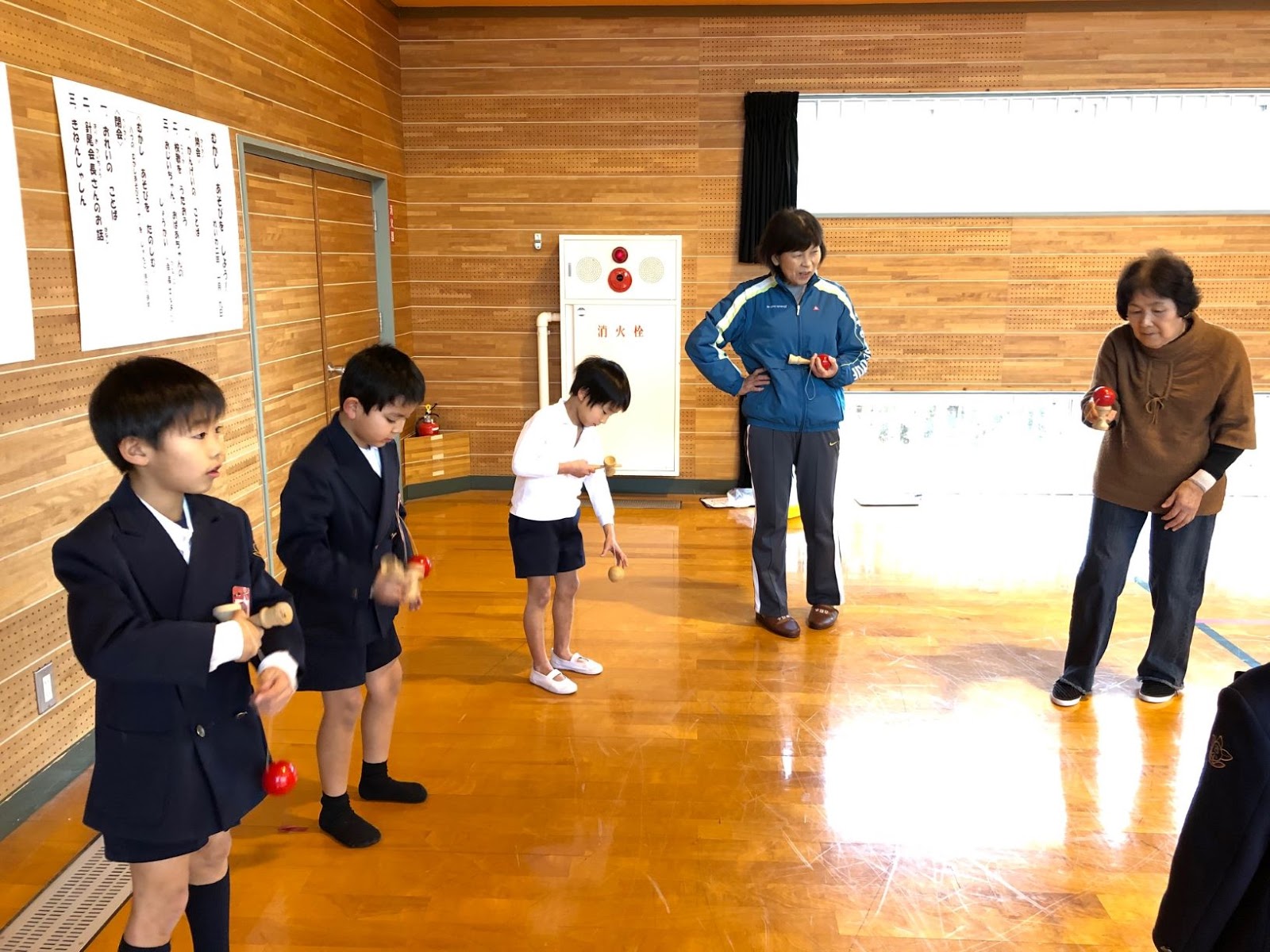 子ども達も徐々にコツが分かってきました。リズムよく突いていきます。イチ、ニー、サン、イチ、ニー、サン、楽しく声を上げながら突いていきます。
